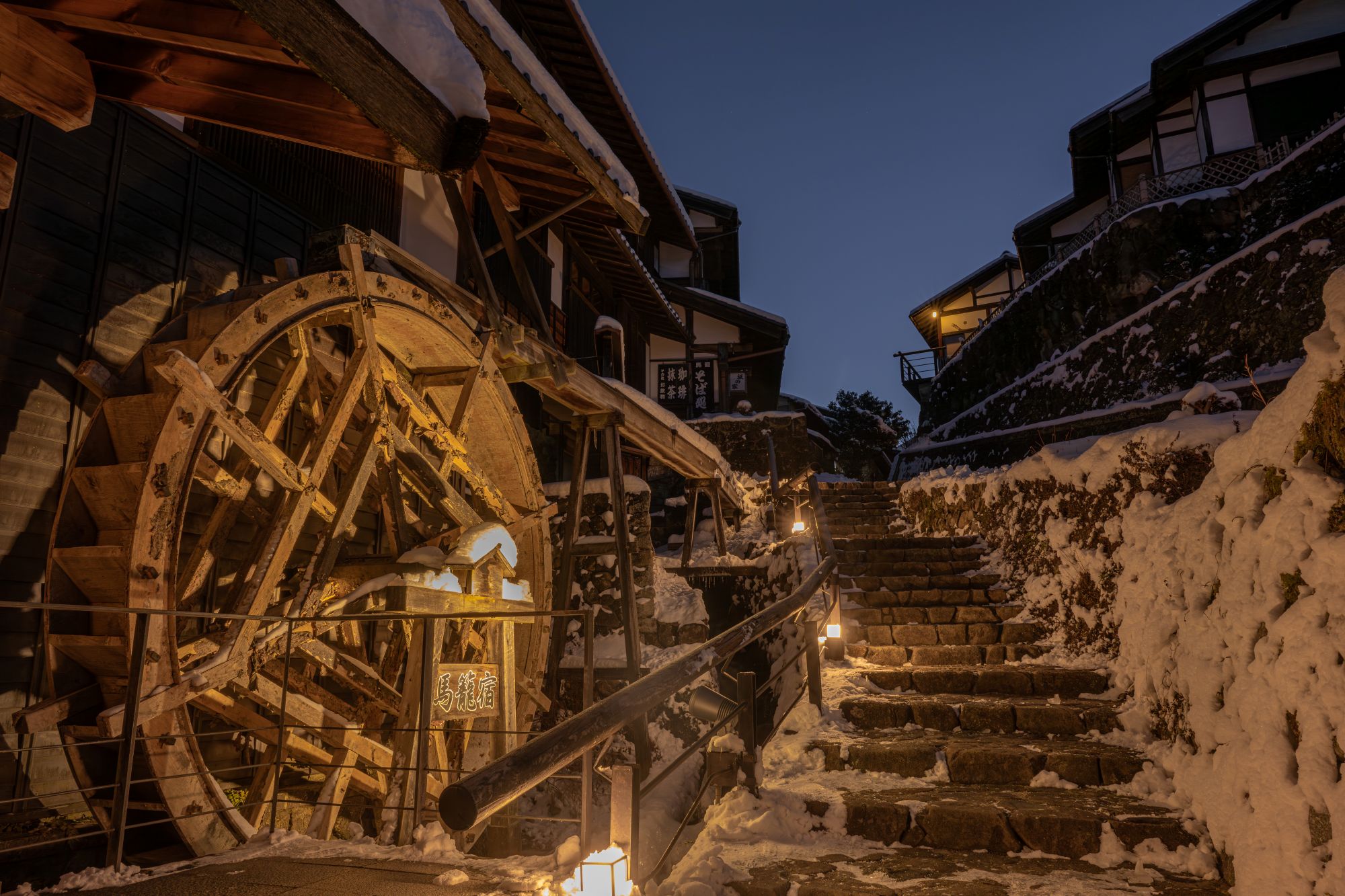 中でもこの場所は石段と水車、宿場町の雰囲気がよく現れている場所だと思います。