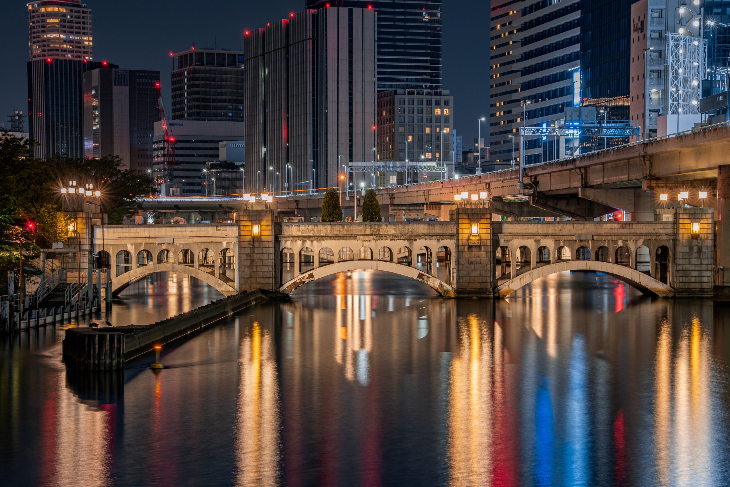 ビルが建ち並ぶ夜の都会にレトロな石橋が架かっており、海外旅行に来たのかと思うような、お洒落な場所でした。