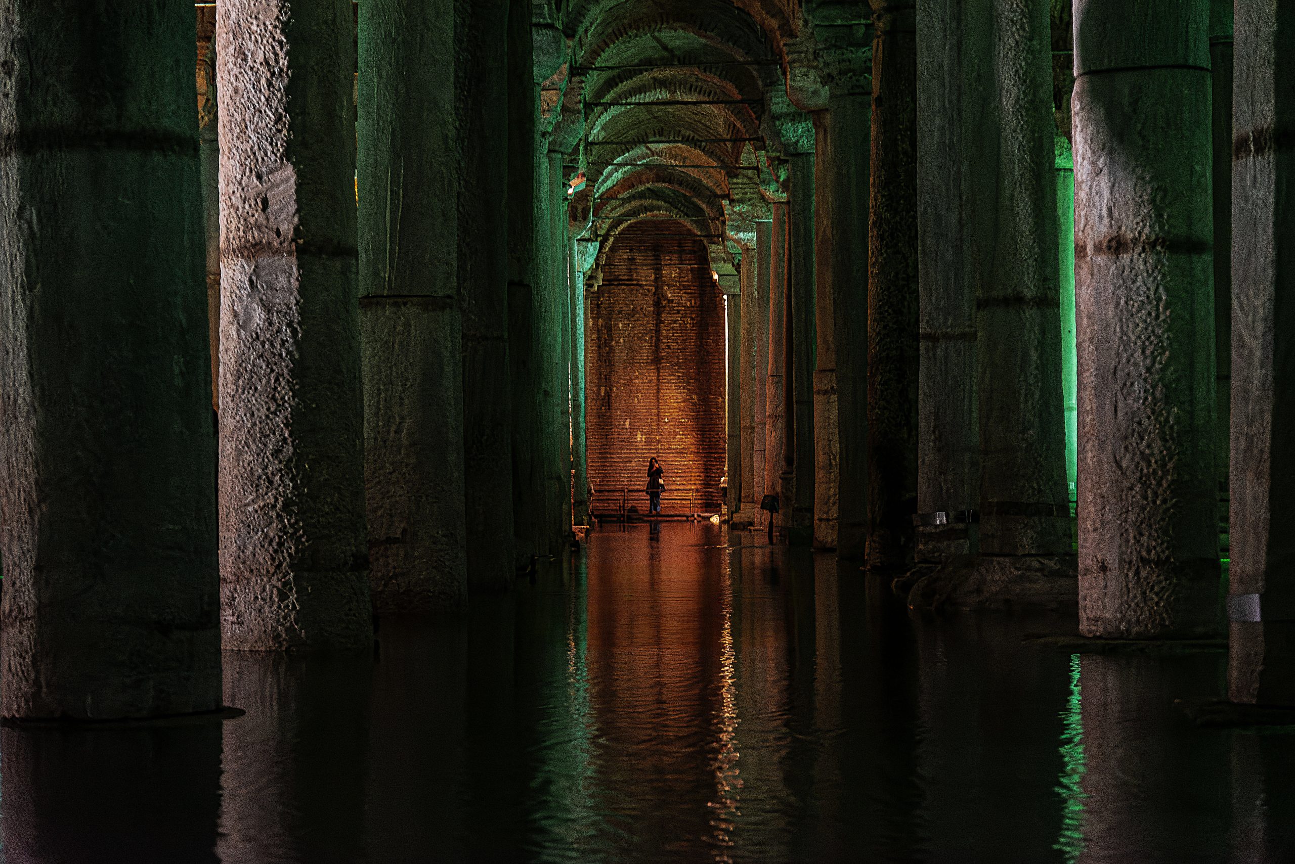 水の中から突き出た無数の大理石の柱が宮殿のように見えることから「地下宮殿」と呼ばれている。